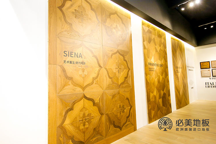 四重高低錯落的拱門,隔而不斷,塑造開放姿態;琳瑯滿目的拼花地板富于線條與圖案的延伸,形態各異,和而不同;溫暖色調與柔和觸感,散發歐洲懷舊復古風情……驚艷全場的必美地板展廳在造型、色彩和功能上下足了功夫,外加有引領世界風尚與高級審美的意大利元素作為品牌DNA,為廣大觀眾呈現一場精彩絕倫的空間設計展自然不在話下。