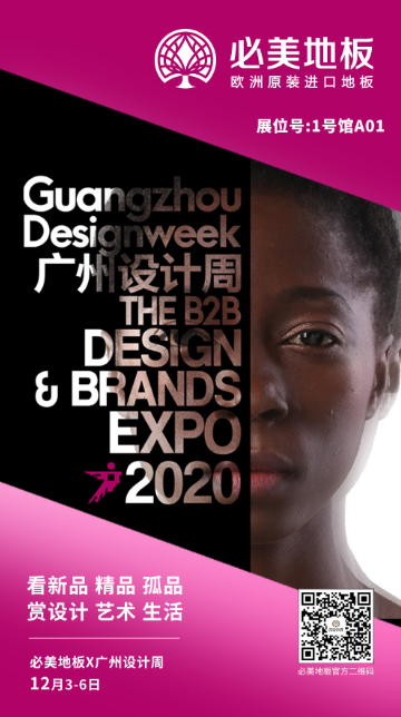 2020廣州設計周將于12月3—6日在廣州保利世貿博覽館+廣州國際采購中心舉行,為期四天的展期預計迎接40萬人次的觀展大軍。必美地板今年將再度出征,在老地方1號館A01展廳以更飽滿的姿態展現設計新生力,打造更具活力的新生態品牌設計展。