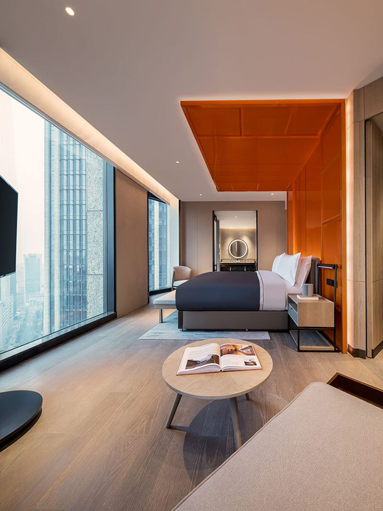 多元、開放是Canopy Central的特性,設計師將天府集市的概念引入其中,融入熱情、充滿活力的成都文化。以歷史回憶為發想起點,復合了東方與西方、往昔與現代的城市意象。Canopy獨有的品牌色——亮橙色貫穿于整個設計,交織著昔日情懷與時尚活力,雅致而不落俗套的格調,帶給旅客活色生香的成都風情及家的舒適溫馨。
