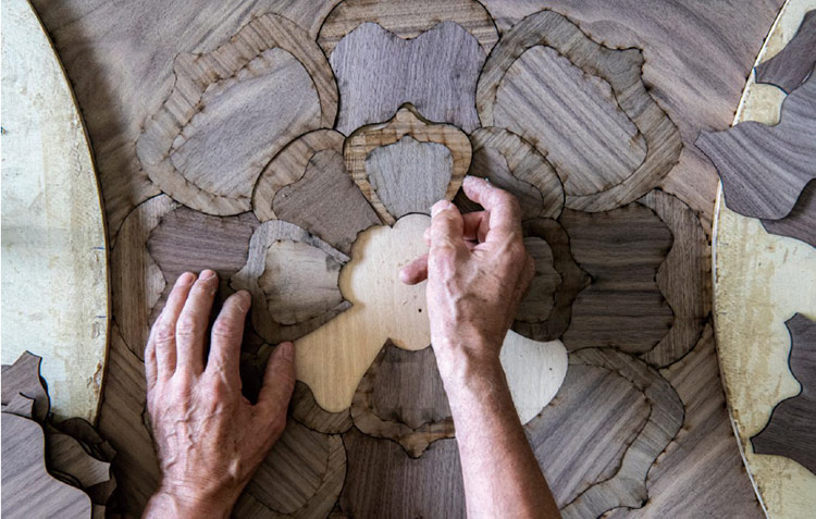 菲列德羅采用家具工藝制作地板,切割、打磨、上色、鑲嵌等全程純手工打造,其中的拼花地板更是由20年以上的威尼斯工匠制作,每種拼花由64個以上的模塊組成,年產量僅為5萬㎡,采用一對一個性化定制,是身份和地位的象征。
