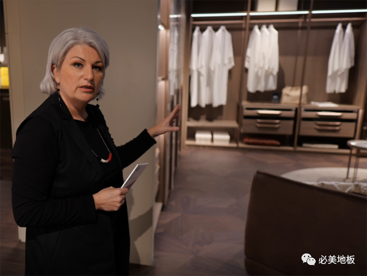 在展示地板樣品的時候,Luisa特別有提到,在產品制作方面,必美菲列德羅的「定制」也同樣非常出色。可以選擇不同的材料、顏色、工藝進創意組合,這些不同的配置方式,構建成模塊化的高端美學解決方案。