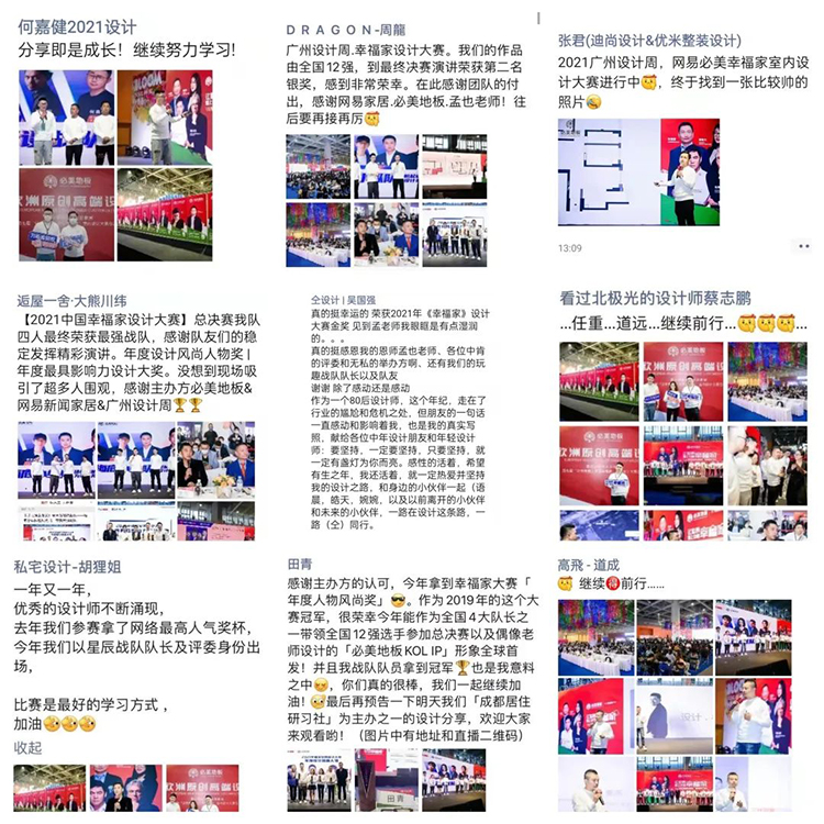 與其他大賽不同的是,必美地板與網易攜手打造的“幸福家”設計賽事,是長期的、是深度的、自帶情感光環的。通過大賽,導師和選手、選手與選手之間、甚至不同年度的選手之間都展開了密切的互動、交流。七年來,“幸福家”早已成為設計圈的成長代名詞,每年都有不少“返場”選手,他們希望通過這個舞臺,讓每一年的成長都被看見、被認可。也有不少設計師通過比賽收獲蛻變,邁上事業的新臺階,從自立門戶到逐漸打出知名度......他們一路并肩追趕、超越,一步步為熱愛前進,奔向行業金字塔。