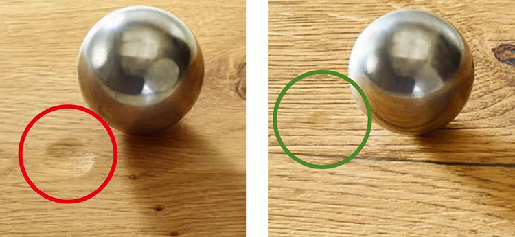 實(shí)驗(yàn)室的對(duì)比測(cè)試清晰標(biāo)明:一個(gè)金屬球以4000牛頓的壓力掉落,在標(biāo)準(zhǔn)的實(shí)木復(fù)合地板上留下了一個(gè)清晰可見(jiàn)的凹痕,而在必美寬綽科技地板上面幾乎看不到任何痕跡。