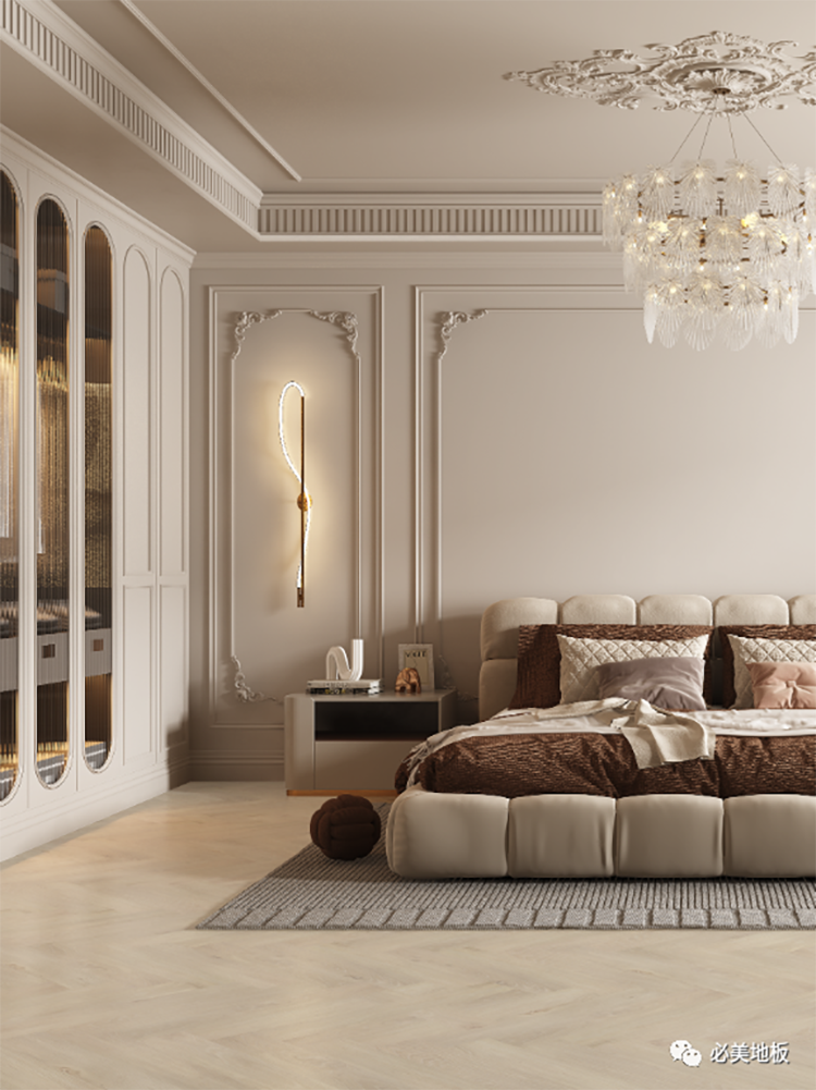 天然橡木人字拼搭配同色系墻漆