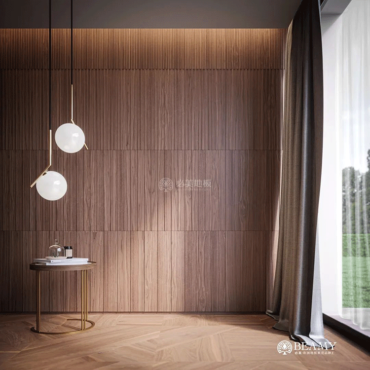 必美3D護墻板是意大利的高奢定制,采用的是淺浮雕銑削加工工藝,使木板更加的呈現3D效果,精選穩定性極強的胡桃木和橡木。溫潤質樸的原木質地搭配精細的匠心設計,提升空間質感。