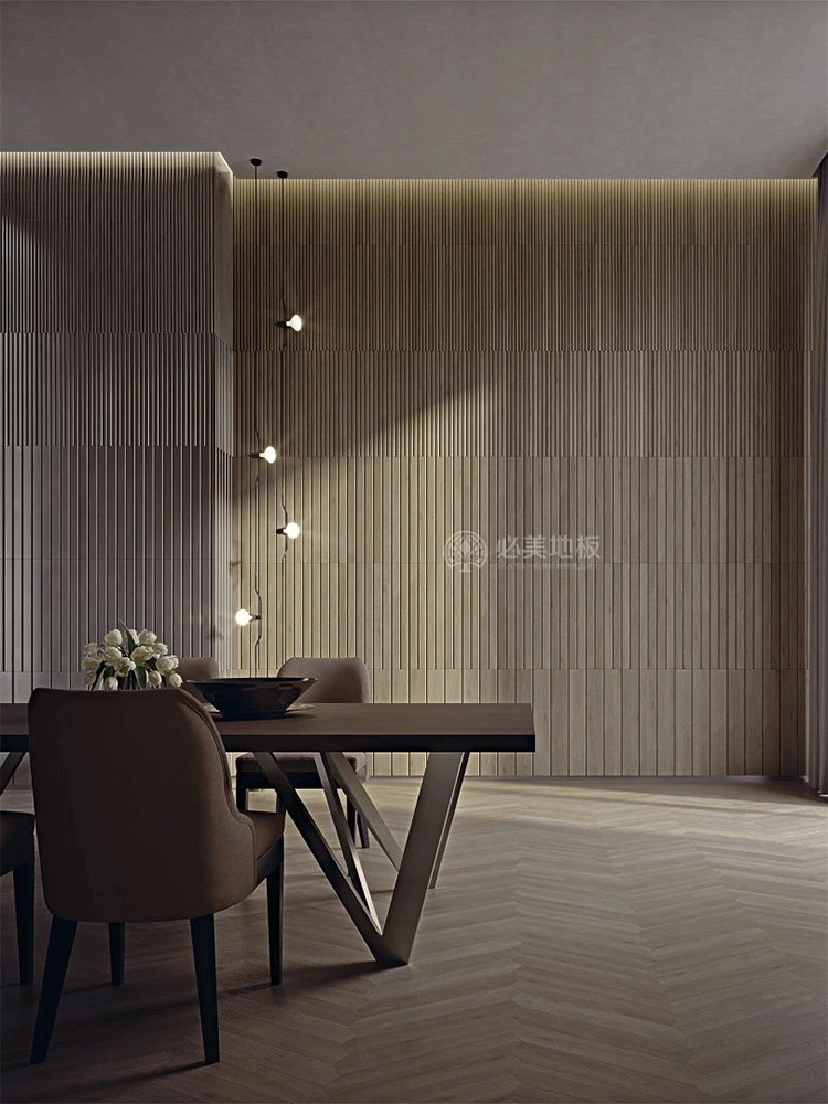 必美3D護墻板極具個性特色的模塊化拼接,精細于形,品質與藝術共存,視覺動線界面呈流暢線條趨勢,多樣化材質、原色配置方式,在循序漸進的藝術美學中,筑就墻地一體化空間格調。