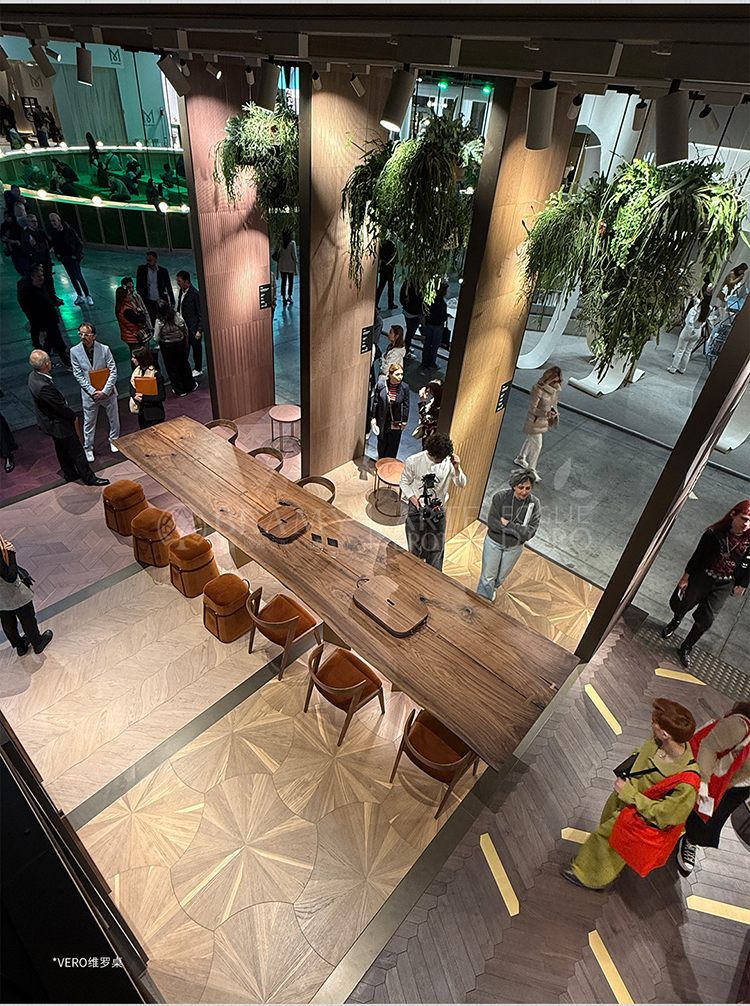 每年都活躍在觀眾視野中的必美阿特·布魯托VERO維羅桌成為展會(huì)現(xiàn)場(chǎng)的人氣單品,選用長(zhǎng)達(dá)540cm的一棵百年樹木,一分為二,榫卯結(jié)構(gòu)聯(lián)結(jié)飾面。原料木頭能長(zhǎng)多高,我們就能做多長(zhǎng),定制化長(zhǎng)度任您選!