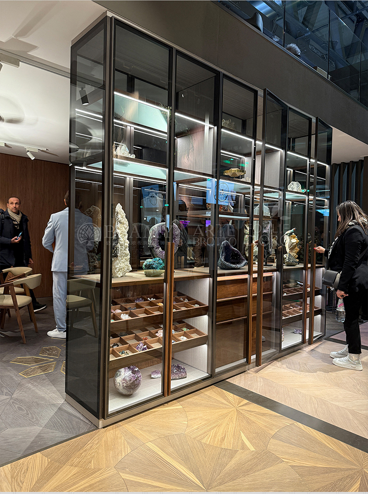 必美阿特·布魯托家具系列在此次展廳里的表現(xiàn)也是可圈可點(diǎn),Principe系列家具,透明玻璃酒柜與Urban H護(hù)墻板、Relevo系列墻板相結(jié)合,高設(shè)計(jì)自由度的模塊化系統(tǒng),產(chǎn)生不同尋常的效果。