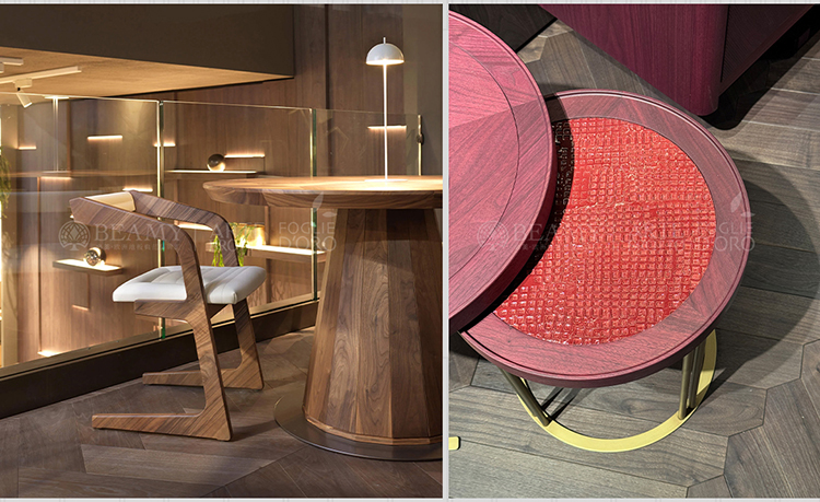 必美阿特·布魯托VERO維羅桌其原料為高品質(zhì)的美國(guó)胡桃木及橡木,從樹干的核心選取出兩塊實(shí)木板,中間用天然的木材關(guān)節(jié)進(jìn)行拼接而成,獨(dú)特而又富有個(gè)性,堪稱大師級(jí)杰作,每次展出都是驚艷的存在!