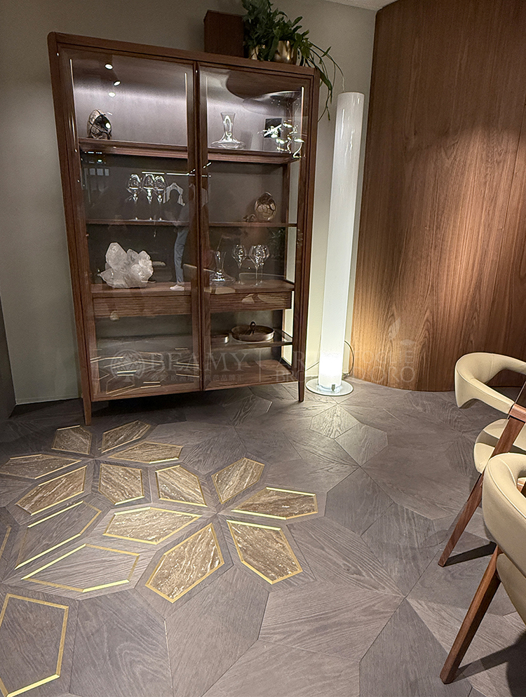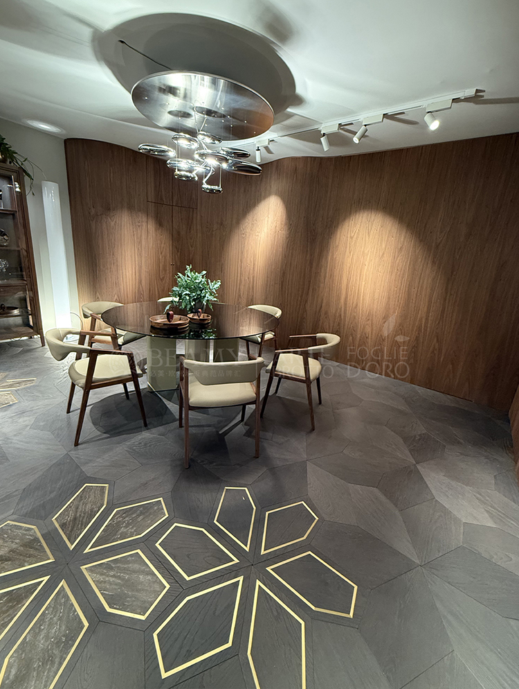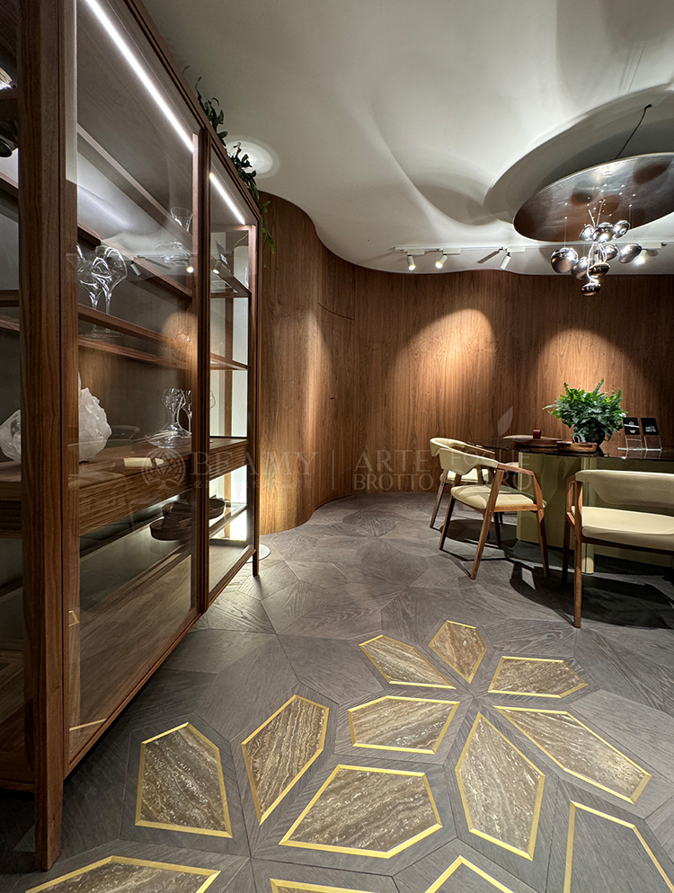 布魯托家族作為意大利手工地板和家具的制造商,專注于為富豪名流打造所有產(chǎn)品的細(xì)節(jié),今年米蘭展上首度推出VIP客戶可尊享地板嵌入專屬意大利制造基因認(rèn)證的定制品牌LOGO,鋪在客戶家里的地板可以直觀看到出品的品牌及意大利制造認(rèn)證,因?yàn)樗鼈冏詭П孀R(shí)度。