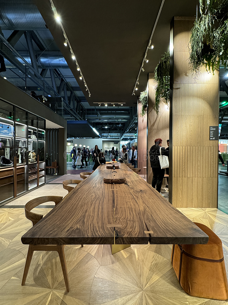 “我們做產(chǎn)品研發(fā)時(shí)也會滿足中國消費(fèi)者的需求,定制每個(gè)不同桌面的時(shí)候都會尊重大自然形態(tài),將來自同一樹干上的兩片木板連接起來,打造出不同的獨(dú)一無二的桌面。”