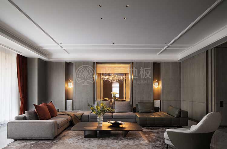 步入會客廳,大面積的灰色影木,色淡高雅,無形之中把千變萬化的自然紋理呈現于世,木紋如絲綢,褶皺如山脈,溫柔起伏,渾然天成,勾勒出雍容華貴的基底。