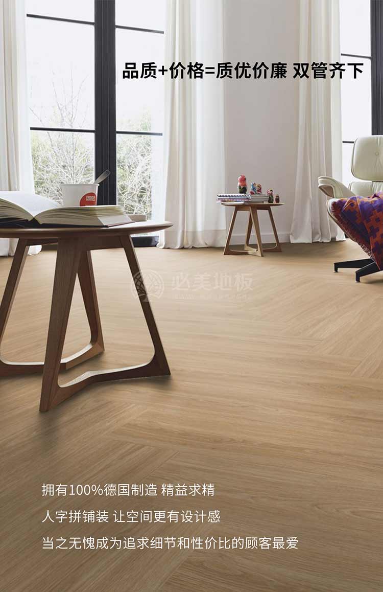 必美邁仕德爾地板代表了日耳曼民族的堅持,它執著生產高品質產品的民族作風,綠色、健康、環保的道德力量,是每一款成功的德國地板對美極致想象。