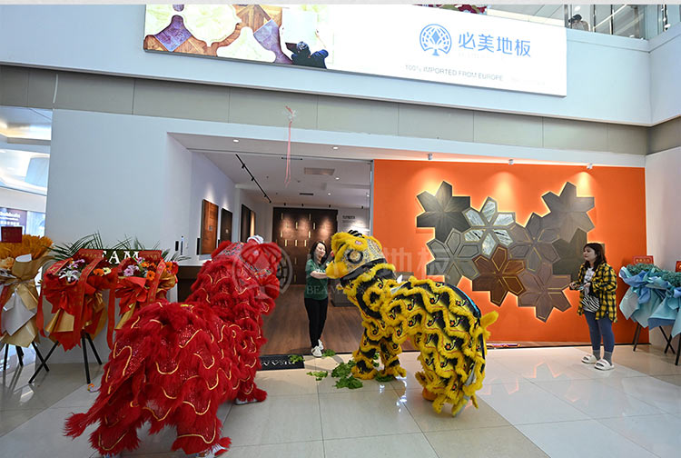 當天,吉林省室內裝飾協會秘書長賈秀波先生、吉林省裝飾協會楊震宇先生、居然智家太陽城店營銷管理部負責人赫明剛先生、吉林省室內裝飾協會大宅設計專家委員會專家/叁委會執行主委/宮空間設計機構創始人宮海寧先生、必美國際集團品牌運營總監譚天謙先生、必美國際集團東北區域總經理梁志全先生、長春必美地板總經理馬丫女士、長春必美地板銷售總監宋啟軒先生等嘉賓一行鼎力助陣本次開業盛典,共同為必美新店舉行了隆重的剪彩和醒獅點睛儀式,禮花齊放,嘉賓齊賀生意興隆!剪彩過后,眾嘉賓和客戶一起參觀必美美輪美奐的新展廳,共同欣賞高奢地板藝術與美感的魅力。