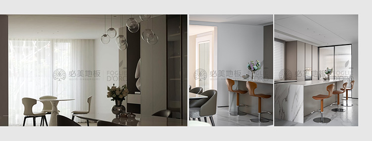 必美菲列德羅巴塞吉奧橡木地板在這個(gè)空間的大面積鋪設(shè),整體以雅致內(nèi)斂的色調(diào)與天然獨(dú)特的質(zhì)感,讓空間充滿格調(diào)與層次,趣味亮色的家具搭配讓整個(gè)空間優(yōu)雅又不失活力,清新又大氣。