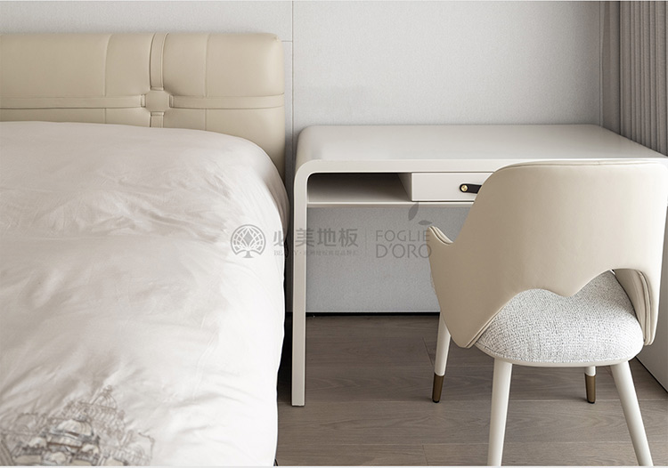 臥室通鋪的是必美菲列德羅巴塞吉奧橡木地板。溫潤(rùn)的木質(zhì)地板讓整個(gè)空間多了一份自然復(fù)古的美感,必美菲列德羅巴塞吉奧橡木地板紋理清晰,每一塊都有獨(dú)特的紋理和色彩與房間的裝飾風(fēng)格相得益彰,形成了和諧的統(tǒng)一,這種自然之美是無(wú)可復(fù)制的,越簡(jiǎn)潔越高級(jí),給人一種回歸自然的感覺(jué)。