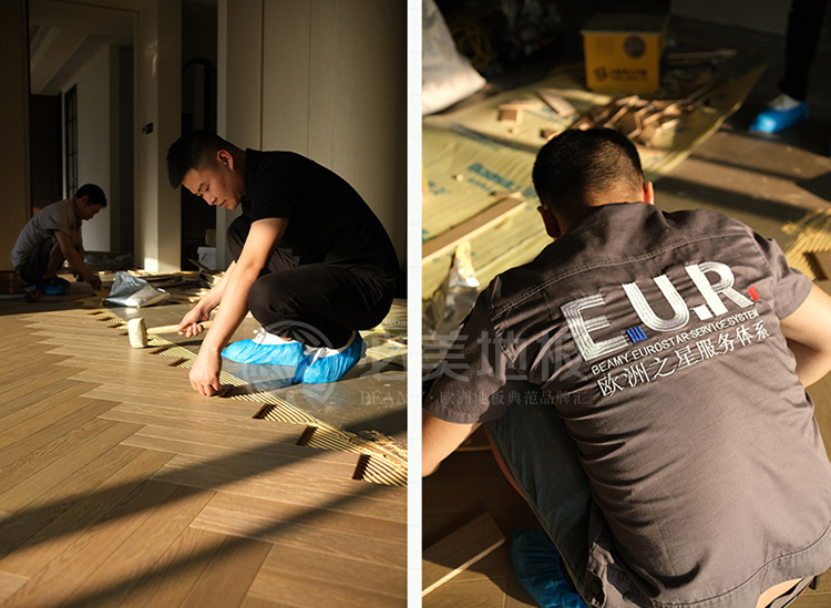 歐洲進(jìn)口地板的安裝工藝要求,是高于國(guó)內(nèi)標(biāo)準(zhǔn)的,必美的施工團(tuán)隊(duì)是經(jīng)過(guò)嚴(yán)格的專(zhuān)業(yè)培訓(xùn)的專(zhuān)業(yè)施工隊(duì)伍,以過(guò)硬的技術(shù)、貼心的服務(wù)贏得了無(wú)數(shù)業(yè)主的青睞。