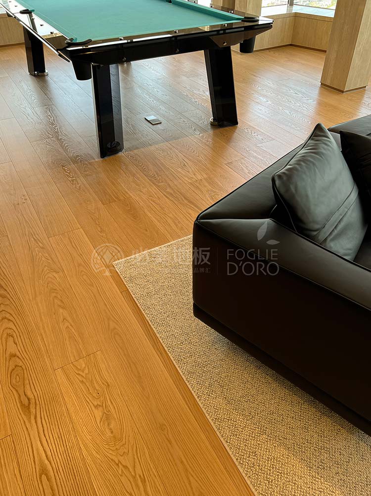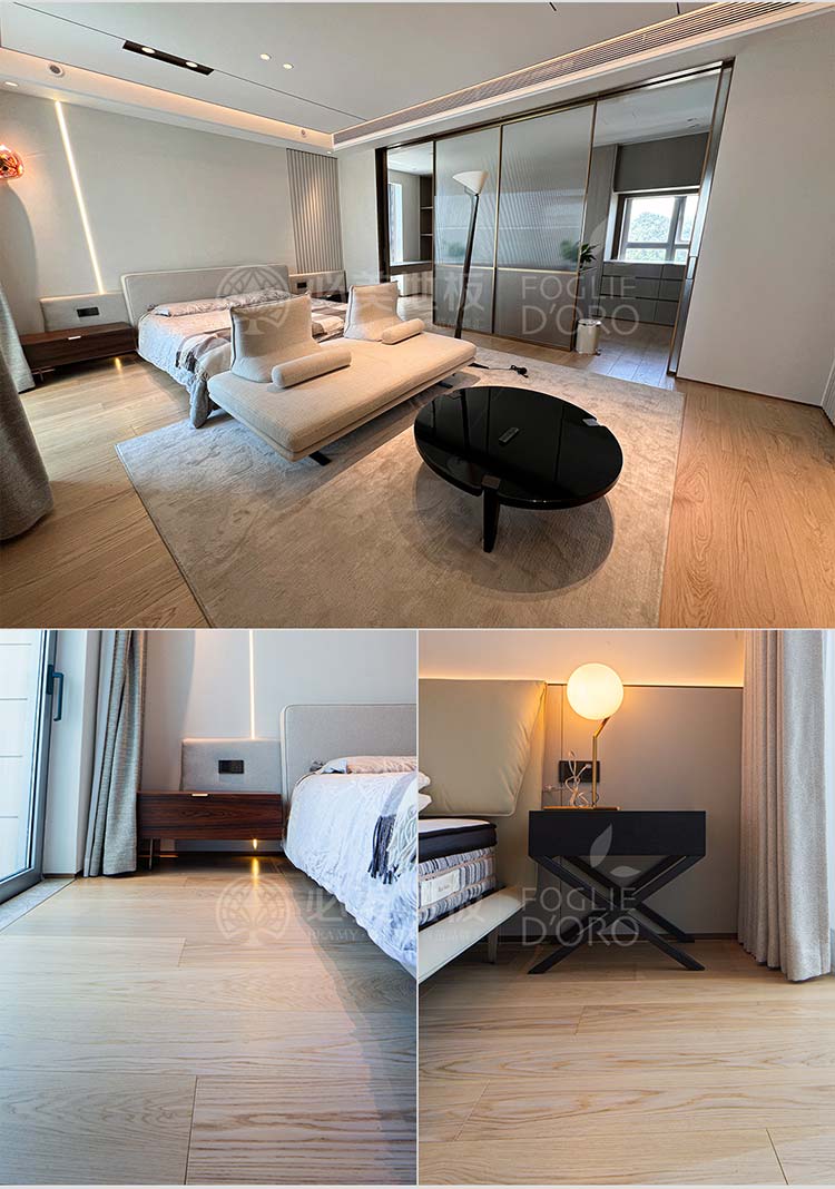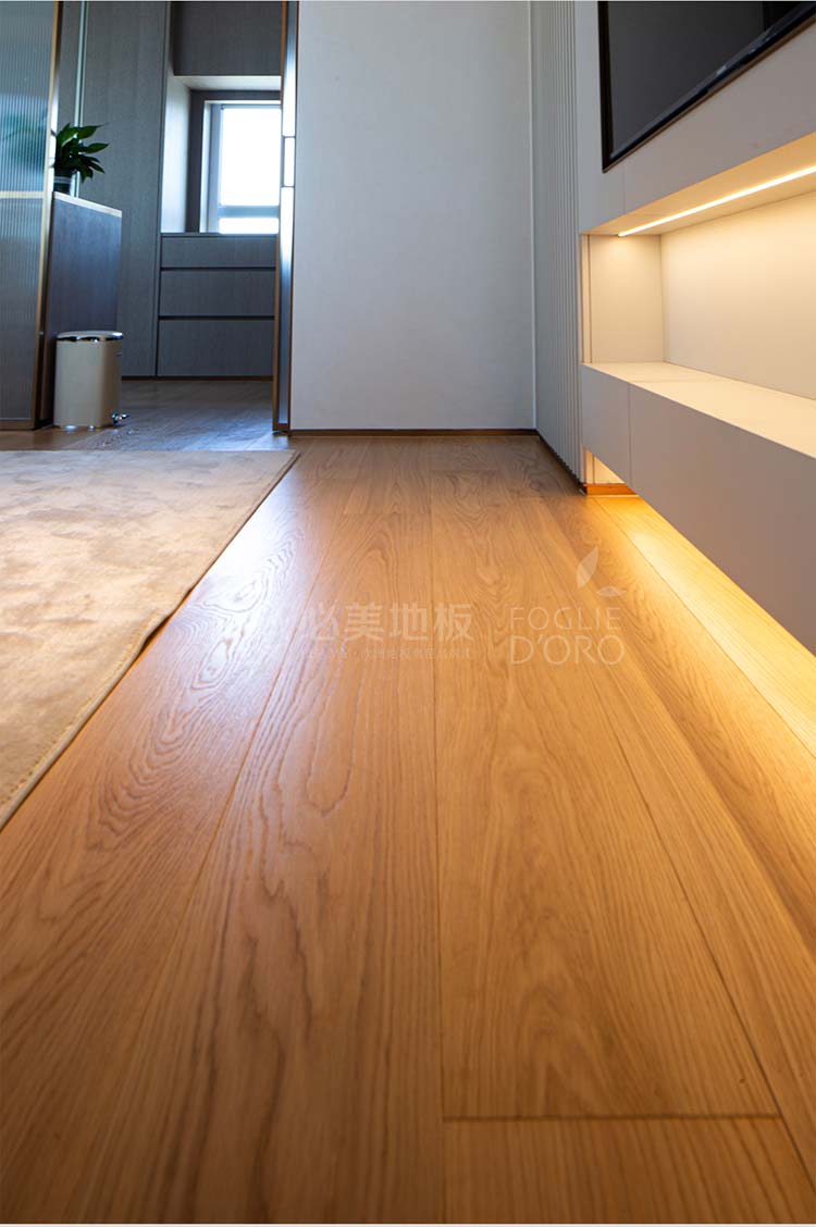 必美菲列德羅巴塞吉奧橡木地板紋理清晰,每一塊都有獨特的紋理和色彩與房間的裝飾風(fēng)格相得益彰,高貴而沉穩(wěn)的色調(diào),其紋理更加深邃立體,仿佛承載著歲月的沉淀與自然的力量。赤腳漫步其上,感受木材天然的溫度與彈性,遠(yuǎn)眺壯闊海景,這種自然之美是無可復(fù)制的,越簡潔越高級,給人一種回歸自然的感覺。