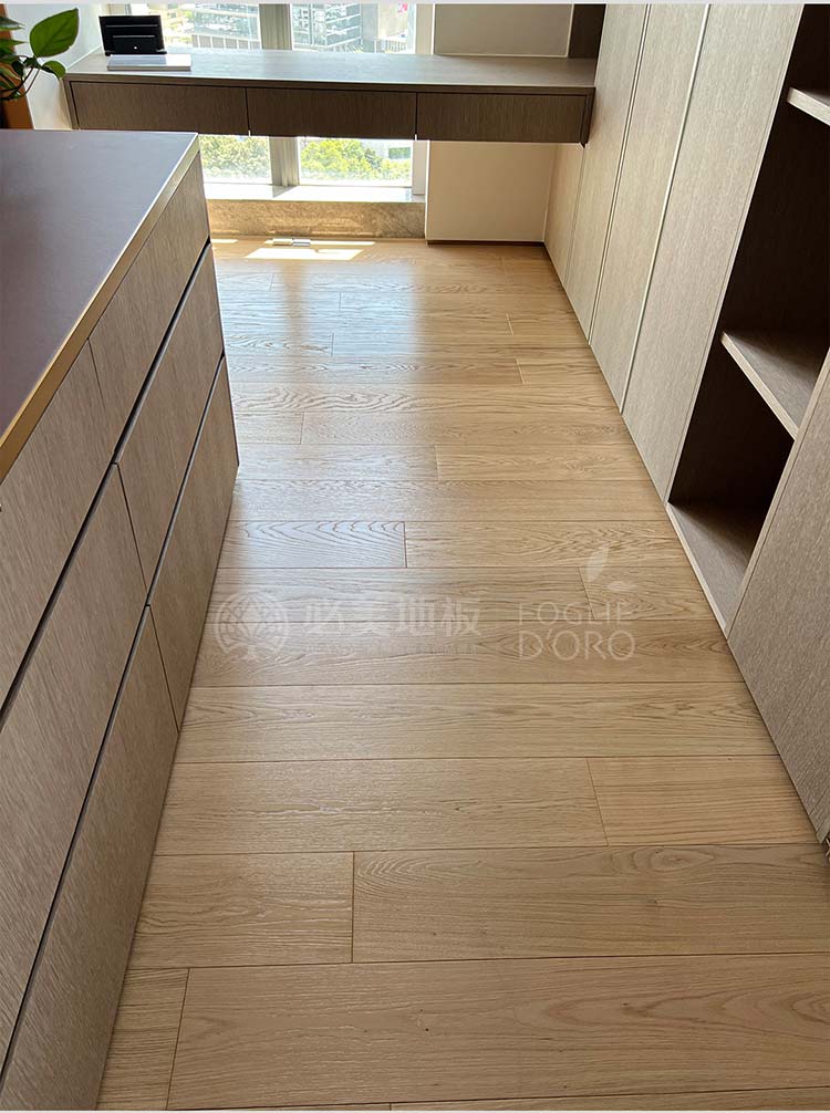這款地板以其筆直流暢的線條和均勻細(xì)膩的紋理,帶來視覺上的延伸感與寧靜感。木色與公共區(qū)域形成了巧妙的呼應(yīng),卻在細(xì)節(jié)處展現(xiàn)出不同的個性,既保證了整體風(fēng)格的協(xié)調(diào)統(tǒng)一,又賦予了每個空間獨有的靈魂。當(dāng)清晨的第一縷陽光穿透窗簾,溫潤的木地板在腳下蘇醒,為新的一天帶來自然與溫暖的問候。