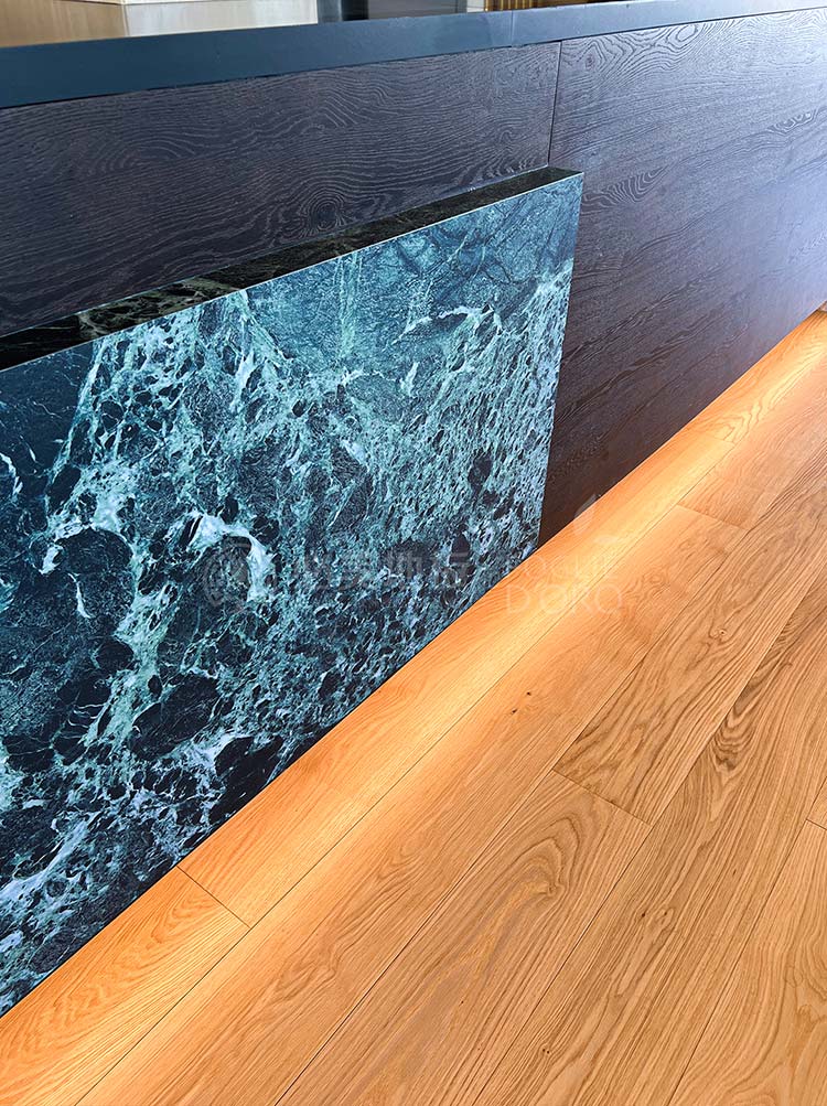 必美菲列德羅巴薩諾直板地板在整個空間的應(yīng)用,低調(diào)優(yōu)雅的外觀,通過拉絲、染色、清漆等手工制作的加工,增強(qiáng)了木材的自然特性,由經(jīng)驗豐富的25年以上的威尼斯工匠以手工拼裝,經(jīng)千錘百煉令品質(zhì)完美無瑕。