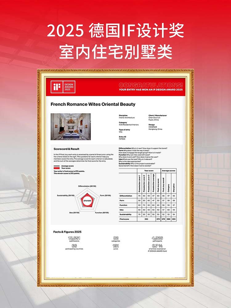 以2025年德國(guó)iF設(shè)計(jì)獎(jiǎng)得主Mark Lau 設(shè)計(jì)的大型莊園別墅為例,其以豐富的國(guó)際視野,借中西融匯的跨界視為,力求為客戶打造豪宅典范的奢想空間,選材遵循“節(jié)能健康環(huán)保”原則,讓建筑,景觀,室內(nèi)三者的交互關(guān)系更加和諧統(tǒng)一。讓其作品在全球眾多參賽作品中脫穎而出,成為設(shè)計(jì)與健康共生的典范。高端品牌的加持,是設(shè)計(jì)作品突破重圍的關(guān)鍵。